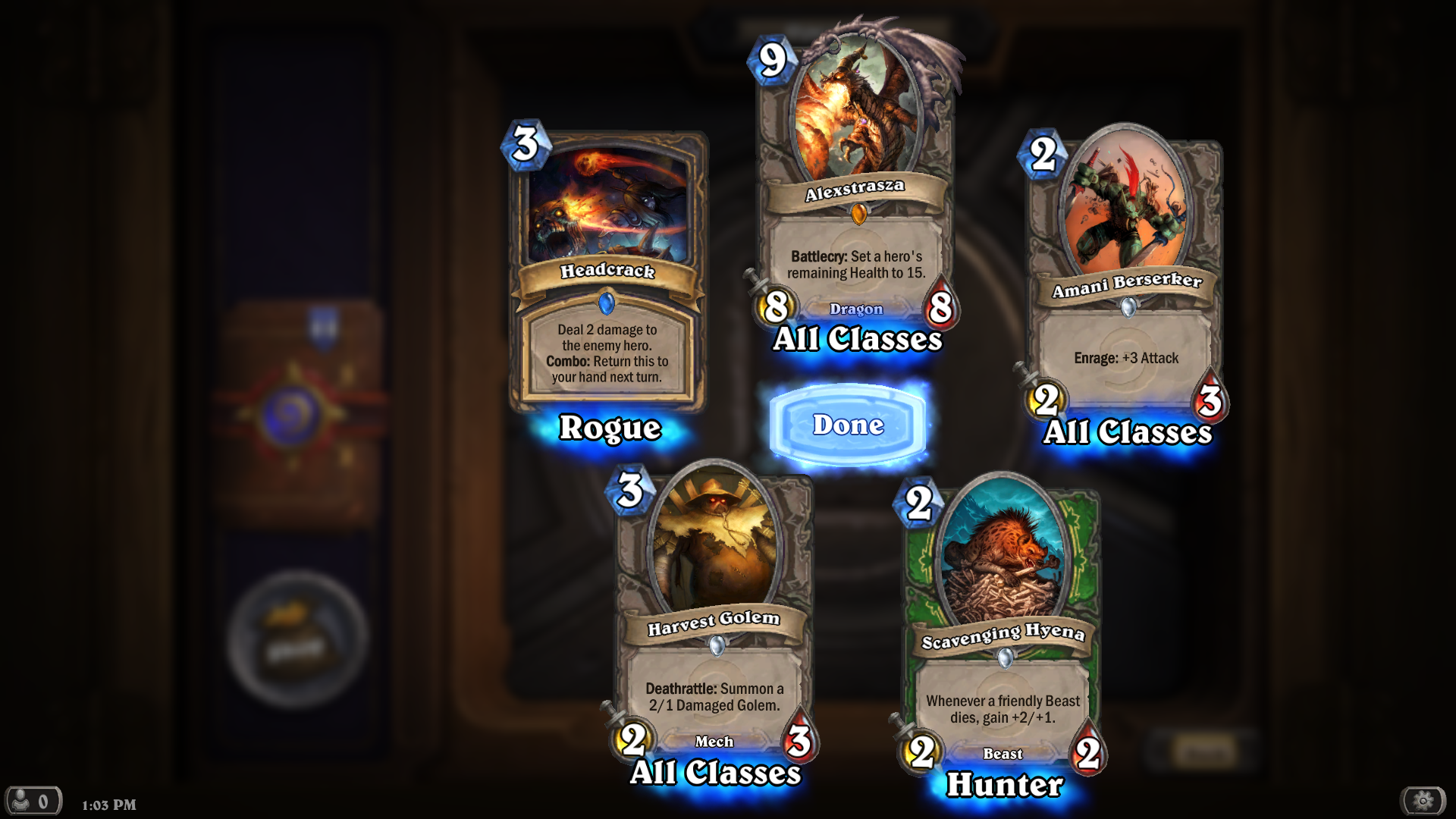 And not needing rare cards is more important than you might imagine, because getting the most powerful and elusive cards is essentially impossible without ponying up some cash. Though the true numbers have never been revealed, it is estimated that your chance of getting a Legendary rarity card (the highest available in Hearthstone) in any given pack is approximately just 5%. On top of this, distribution rates appear to be completely random, so you can easily get duplicates when opening packs, which have very little value compared to receiving a card new to your collection. While it’s true you can earn packs for free by winning matches, the amount of investment needed to get Legendary cards is massive, no matter whether it’s gained through time or money. For a long period of time, these factors kept the grind fun and exciting as players methodically searched for new ways to optimize their decks, but more recent expansions have flipped this mechanic on its head.