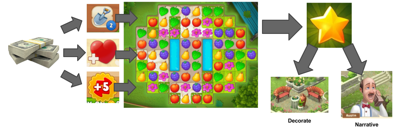 Gardenscapes have crafted a perfect core loop: Their decorations and narrative teases players to stick around for the long haul, while their core can effectively pace and monetize of its player base.