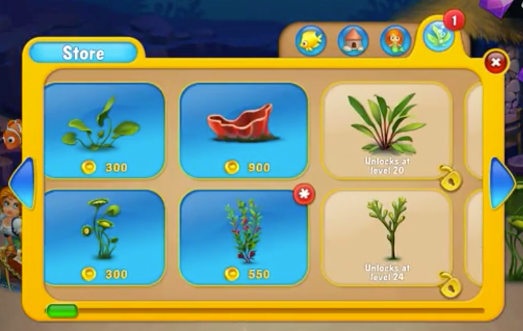 Comparing goal setting in Gardenscapes to Fishdom shows this. In Fishdom, players are allowed to spend their coins on as many decorations as they’d like, and progressing in the saga is only meaningful if you actually desire the content unlocked in the late game. Players can quickly feel overwhelmed with the choices Fishdom offers to decorate and spend coins. Also in fishdom, PlayRix constantly has to come out with new and desirable content -- otherwise their players have little reason to grind. Gardenscapes however streamlines this process and always gives players limited choices: this is far more effective for casual audiences.
