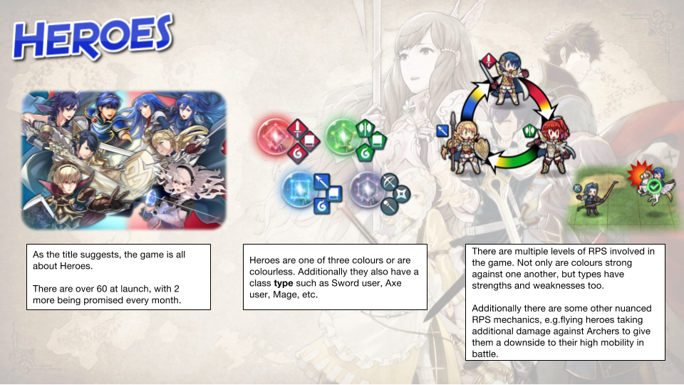 Just as its name would suggest, Fire Emblem really is all about its heroes. There were around 60 at launch with more coming in at a steady pace. The Heroes come in multiple colors and types, which greatly impacts the core gameplay. Each mission can be min/maxed by carefully thinking about the enemies you will encounter compared to the Heroes you own. To truly master the game, over time you will want a well-rounded roster with powerful heroes of multiple types. This means a lot of going back over old missions and the training tower to build up the level of your Heroes.