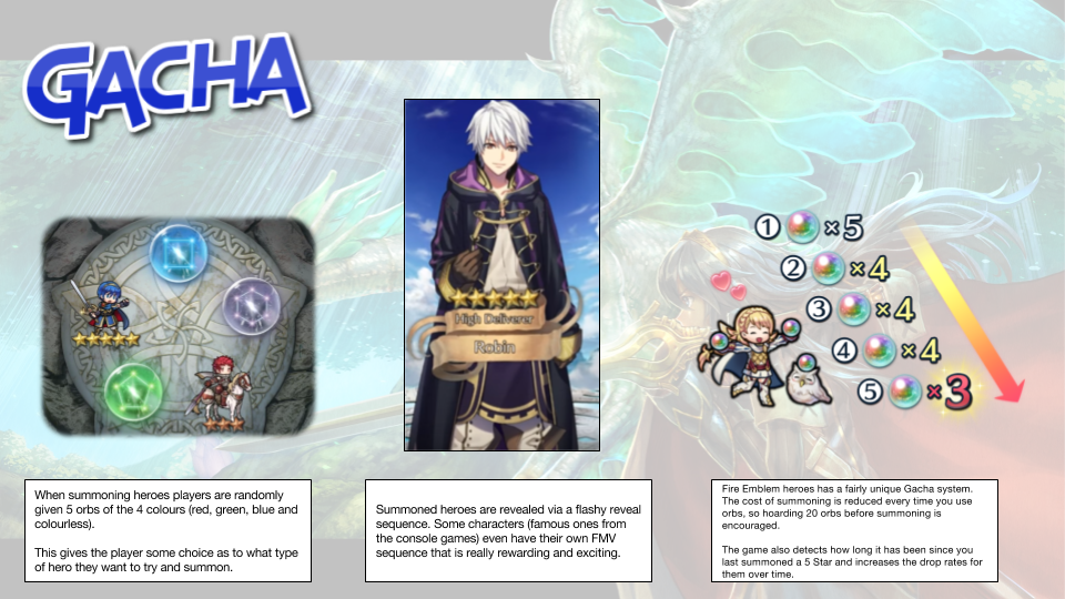 Gacha is the lifeblood of any RPG based game, with developers making large numbers of 2D assets that can be created fairly quickly but that are in high demand by players. Fire Emblem actually introduces a fairly unique system to its game as players get a discount on their summons by summoning up to five heroes at once. The player also has some ability to influence their rolls, by being able to choose from either Legendary or Devoted hero (these determine their type) and by getting a preview of what color they will earn. If you really want Marth, who is a red Hero, then if you go to summon and see that there is no red available, you only have to make one roll and know that it's not possible to get him in that specific summoning period.