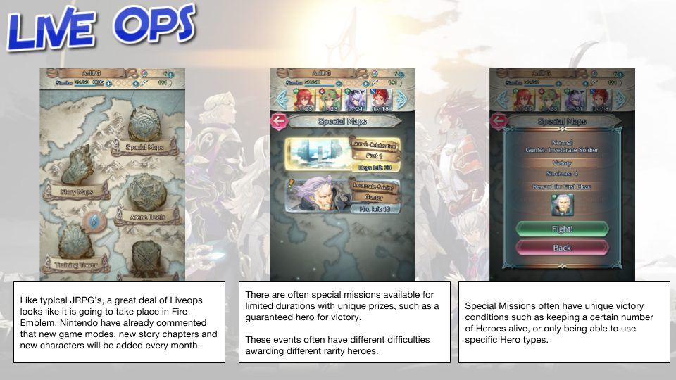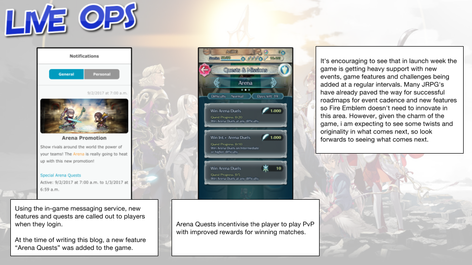 It's encouraging to see that in launch week the game was getting heavy support with new events, game features and challenges being added at a regular intervals. Many JRPG's have already paved the way for successful roadmaps for event cadence and new features so Fire Emblem doesn't need to innovate in this area. However, given the charm of the game, I am expecting to see some twists and originality in what comes next, so look forwards to seeing what comes next.