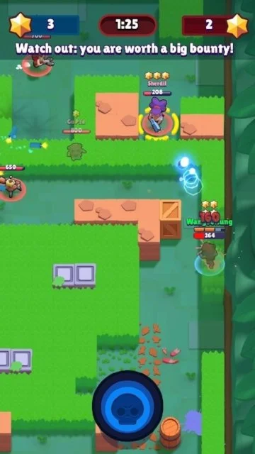- Each player controls a single brawler and guides them around an arena. Each Brawler has HP and 3 attack points. Every time a player uses an attack, one of these points is depleted, but it refills over time.