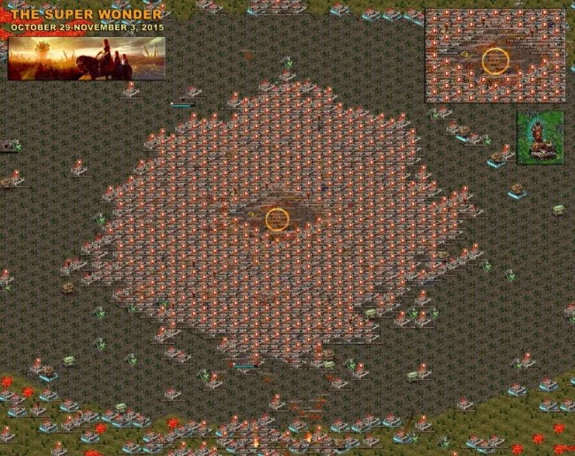 A screenshot from Snow_1021 showing the battle for the Kingdom of Fire Super Wonder last year. Look how many players are battling it out for this one!