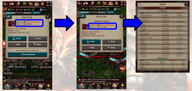 As a result of all of this, gameplay can vary from kingdom-to-kingdom with a lot of the game actually becoming a meta-game of subterfuge, politics, and planning. Some Kingdoms have NPA's (non-aggression pacts) where players can't attack each other or capture heroes. Break these rules and the top dogs in each Kingdom will send in their forces and wipe you out. Other Kingdoms are free-for-alls where anything goes and players can attack each other at will. Alliances leaders and lieutenants are thus in close contact with one another as often the enemy of your enemy can become your friend! There is also often drama when big personalities from big Alliances have a falling out and start their own Alliance and take some of the original alliance with them to create the equivalent of a civil war. It's the closest you can get to living in a real life version of Game of Thrones.