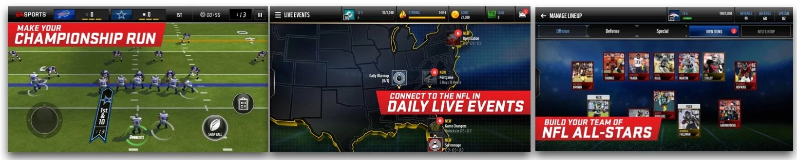 Madden Mobile has been an amazing success story for EA and is at the moment of writing EA's top grossing game in US. Since the game launched in late 2014, it has been a top grossing mainstay during the NFL season. In fact, the only weakness the game has it’s the extreme seasonality. When NFL season is on the break, the game drops out of the charts only to be resurrected with a massive update at the start of a new football season.