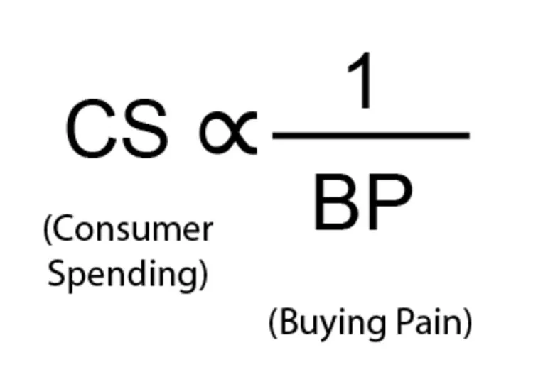 Consumer spending is inversely proportional to buying pain, which reflects how much pain spenders feel after parting with a dollar.