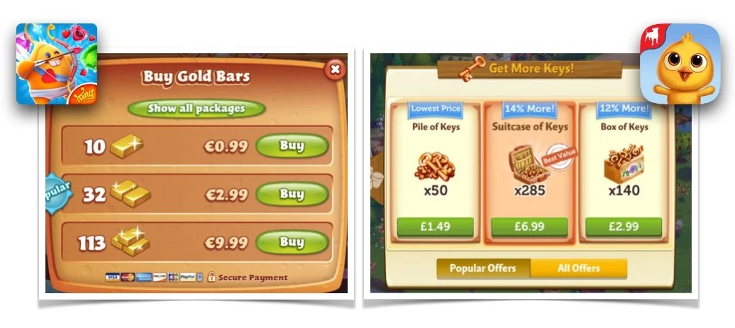 So, how can this real world model be used in virtual stores in games? Popular match-3 games from King.com utilize this model and psychology to their advantage: