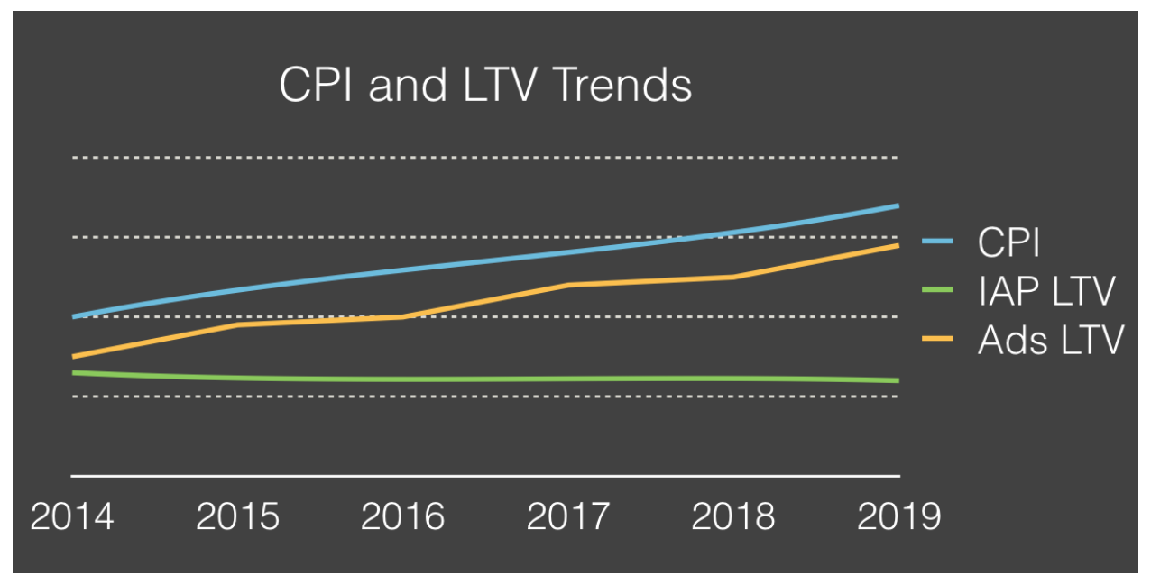 Hyper Casual games have been covered before, in our article on Gram Games - but essentially it breaks from the usual F2P model in which systems, economies, and content need to scale for years. Instead, it relies on short, accessible, widely appealing gameplay that is more about early day retention & driving engagement over strong long-term retention. While long-term retention can help, these games are usually developed in less than 2 months and can make back their development costs in far less time than a larger budget F2P game. This model of course was pioneered back with Ketchapp years ago, but this year has seen a resurgence with companies like Voodoo, Gram, BitMango, and Cheetah all seeing massive growth within the last year. Ad-based monetization has grown substantially over the past year, and games that take advantage of it are benefitting.