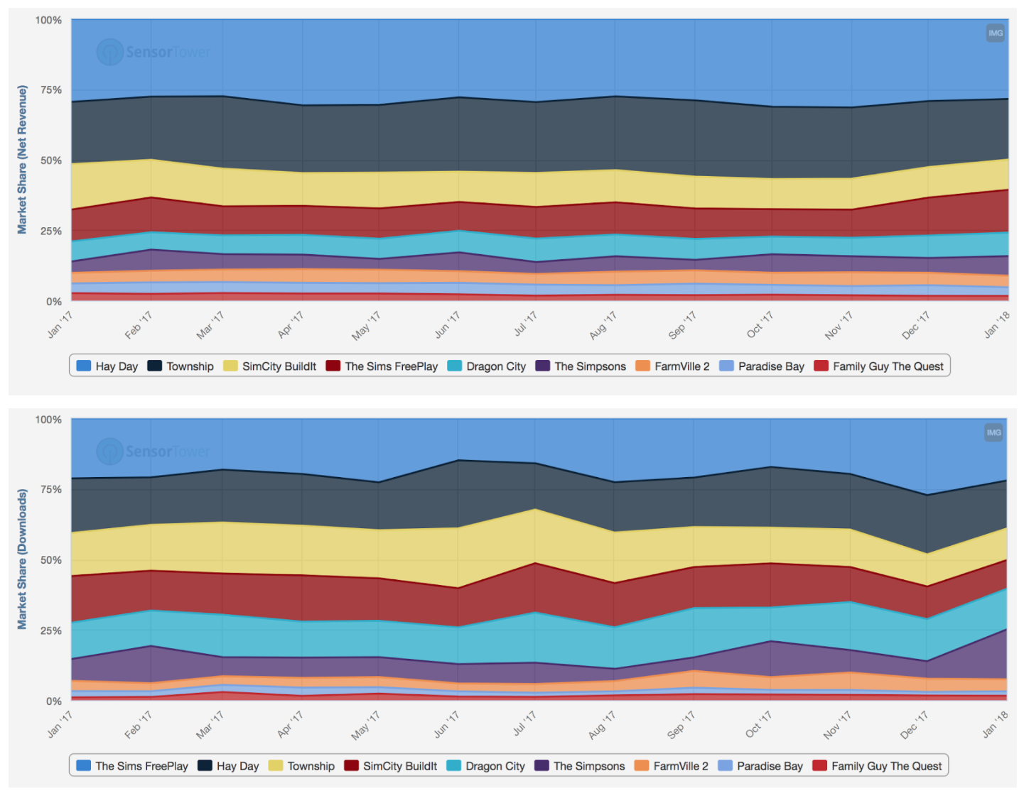 For last three years, the market share has been pretty much the same with Hay Day, Township, Sims, and SimCity