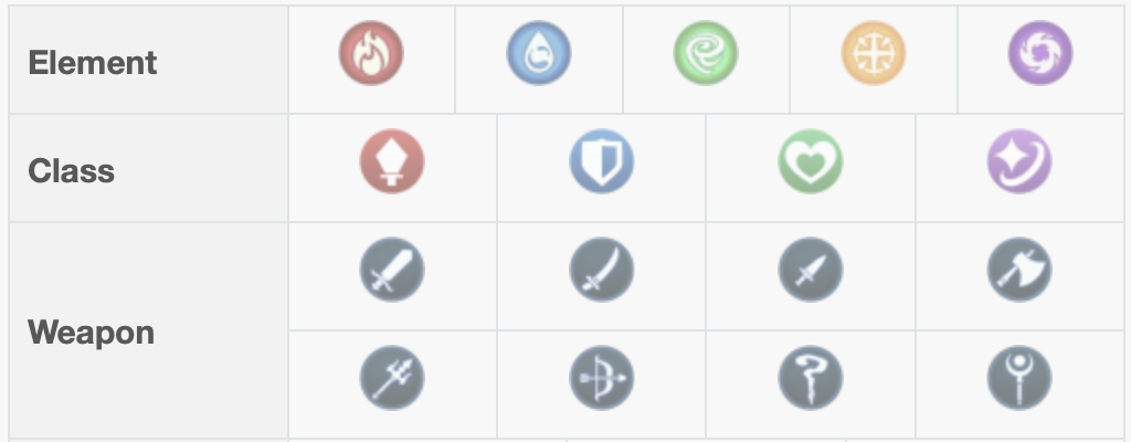 Rare elemental versions of weapons can be created, which give 50% damage bonuses to characters of the same alignment. The 4 star and 5 star versions of the elemental weapons tend to be very hard to craft, with very rare materials involved, but crucial to late game success.