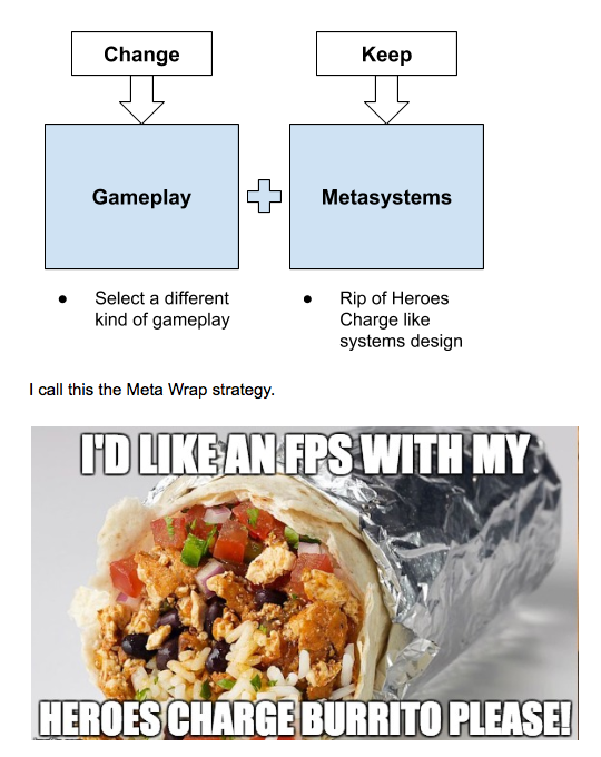 Meta Wrap Strategy: Employing the Meta Wrap strategy using Heroes Charge-type metasystems design and differentiated core gameplay.