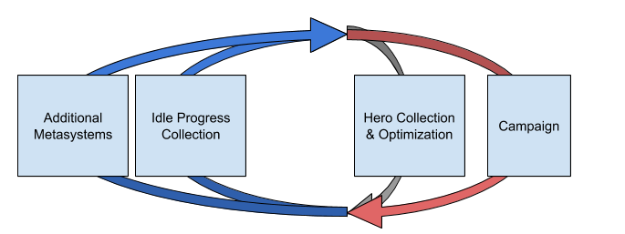 Simplified diagram of Idle Heroes core loop