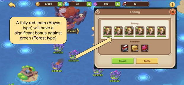 Example of All Green-type Enemies in Celestial Island - Motivates building a Red Team