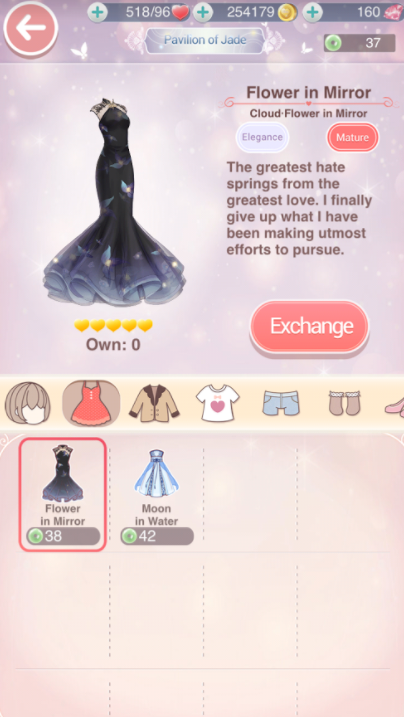 To get a Premium gacha costume can be very long or expensive. For example, a player gets 1 jade currency for free every 48h. To buy the Flower in Mirror suit in the gacha shop, the player would need 295 Jades currency = 590 days or spend 885$ if she/he is particularly unlucky.