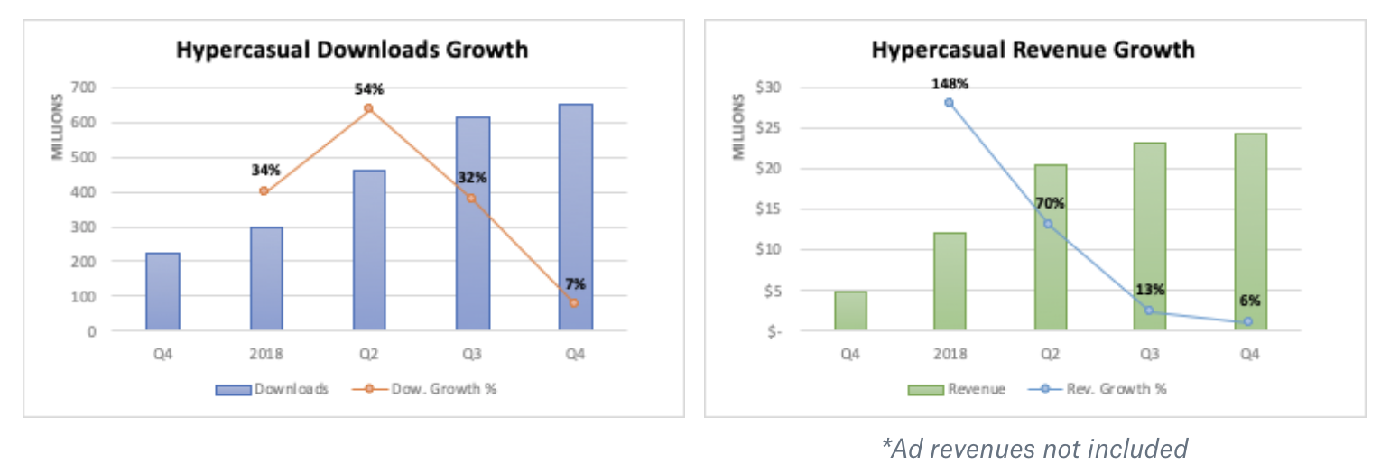 Last year myriads of publishers understandably jumped on the Hyper-casual bandwagon. During this growth spur, Hyper-casual pushed the envelope on many sections of the industry’s value chain - both the creative and operational sides. As a result one can argue that user acquisition and especially ad revenues reached new heights as the Hyper-casual games grew to become one of 2018’s defining trends. It experienced a greater than +200% Year-over-Year (YoY) downloads growth, and close to a +340% YoY IAP revenue growth.