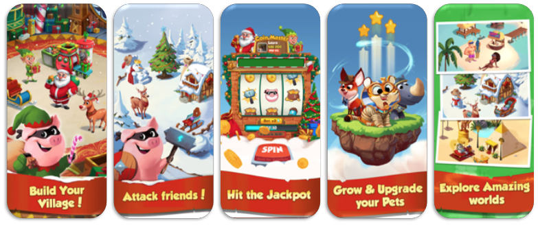 More interestingly, Moon Active and Jelly Button Games are slowly popularising a very new kind of game - if we were to name them, we’d probably call them “Social Casino Builders”. These are games that have a casino mechanic at their core (slots, roulette etc.), introduce progression through a base building meta and top it off with social mechanics, including light natured raiding of other player bases and stealing from them. The term “light natured” is key because raiding or stealing are just one touch actions resulting in immediate loot.