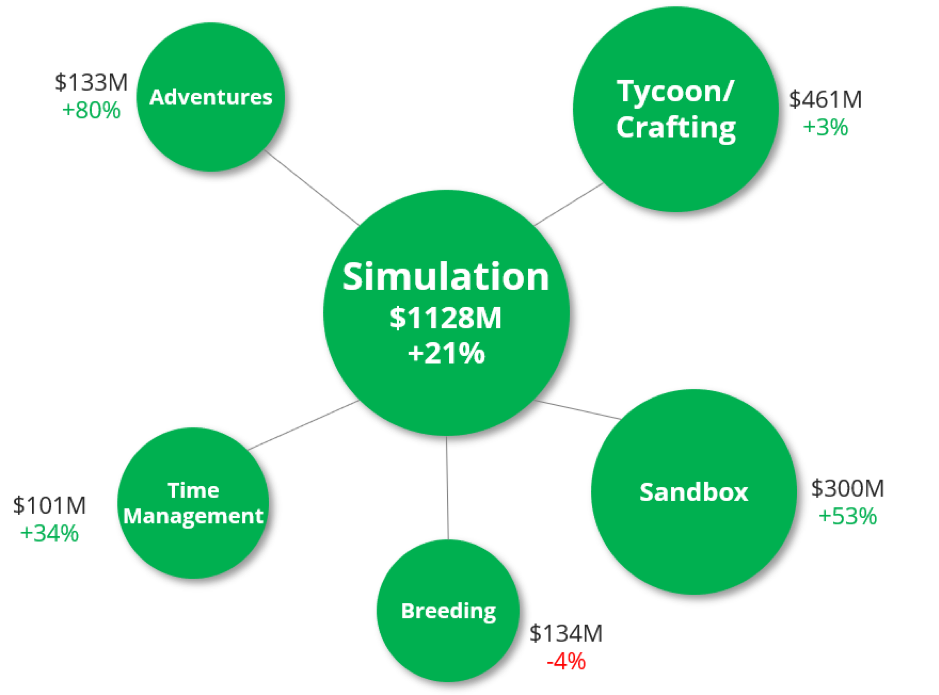 As you’ve noticed from the previous prediction post, we actively refer to the genres, categories and sub-categories. In this third post we discuss Simulation and Lifestyle games, which we see as categories in casual games. To understand our taxonomy in details, please read this. To understand it at a glance, please look at the image below.