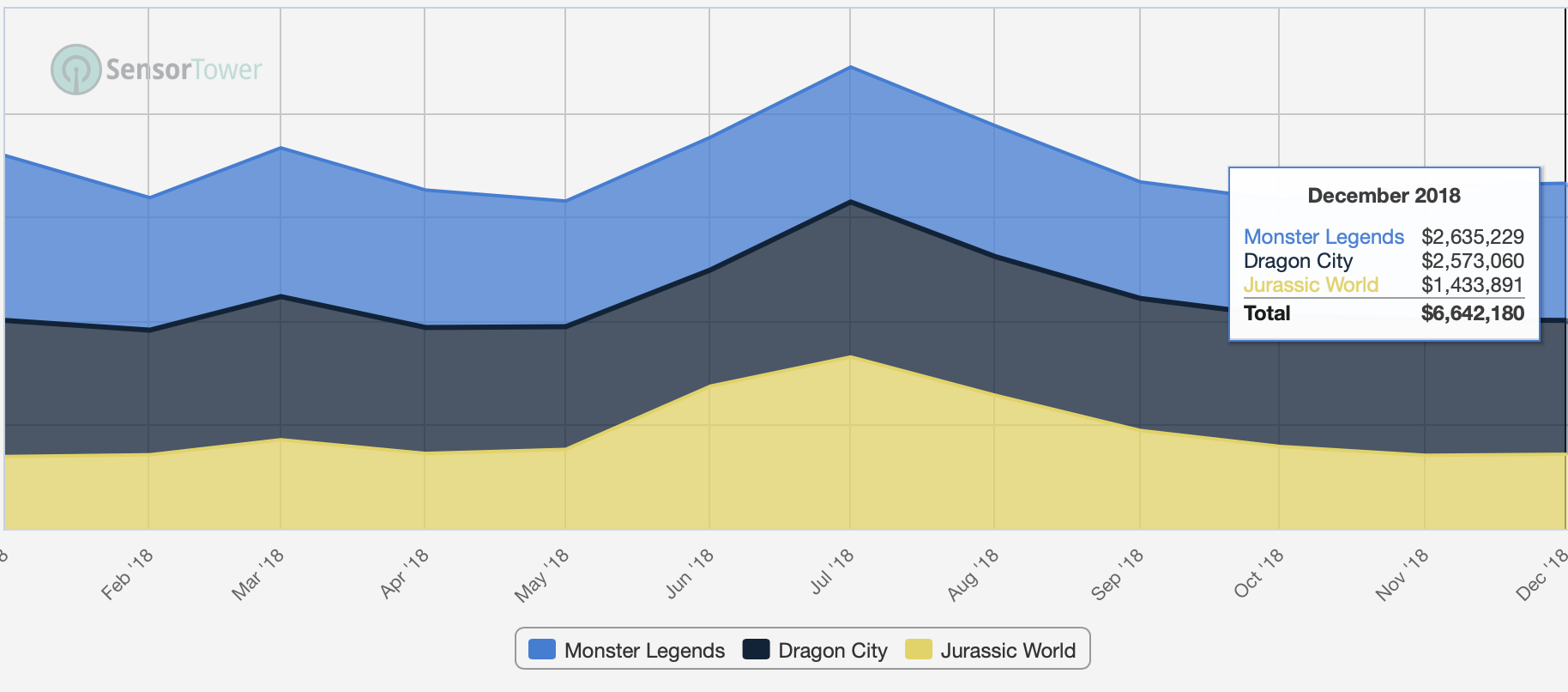 The only truly noteworthy development during 2018 was the success that a two-year-old Jurassic World: The Game experienced during the massive launch hype of the second Jurassic World movie and the launch of Jurassic World location-based game. We’ve seen similar effect with older Marvel and Star Wars games when these franchises launch new movies. The key learning here is to have your finger on UA and in-game events when the sequels are coming.