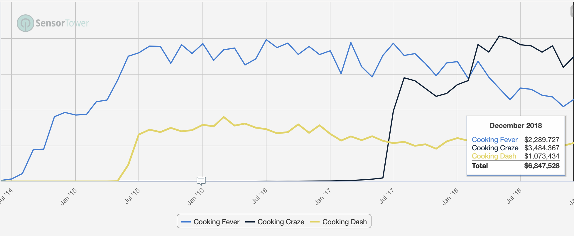 Cooking Craze is a great example of a game that entered entrenched and relatively small category late but was able to climb quickly to the top with smart improvements to core and meta-game.