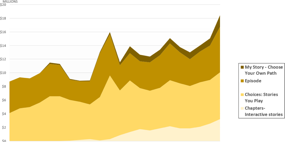 Revenue growth of various Interactive Story Games over 2018.