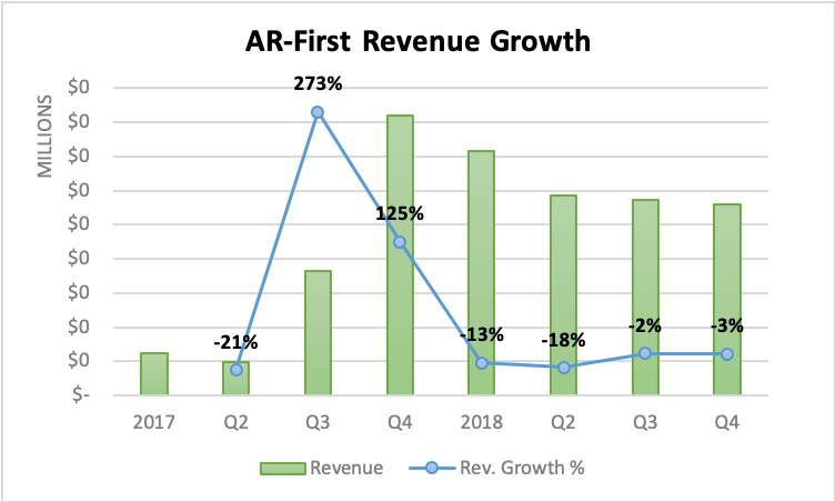 The two major reasons for a declining 2018 is the low penetration of mobile devices that support AR technology and massive friction observed by potential customers to play AR-first mobile games while on the go. Further, a good chunk of AR-first games are paid, in turn throttling adoption growth. While 2019 will see an improvement in device penetration, the only thing we can say for now is that this space will not see any major movements until wearables (AR glasses for example) supporting AR-first games make a big splash amongst consumers.