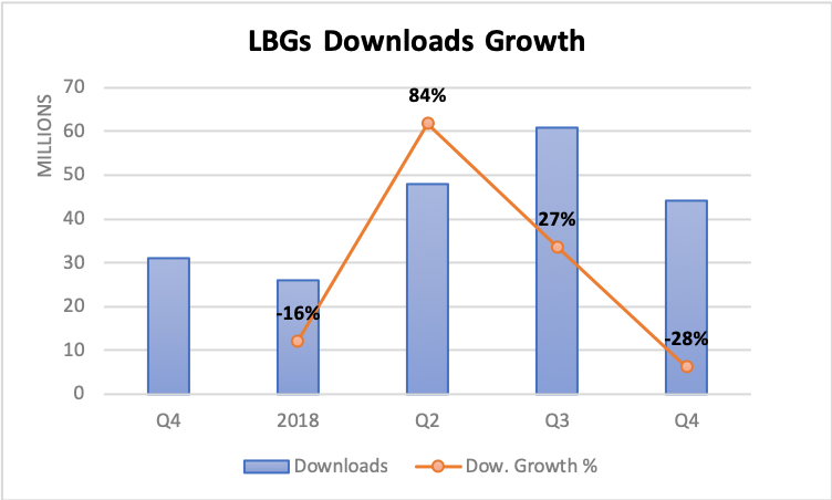 All this market action resulted in massive Quarter-over-Quarter (QoQ) growth spikes on both the downloads and revenue sides of the market, with Q2 and Q3 2018 being the highest growth quarters.