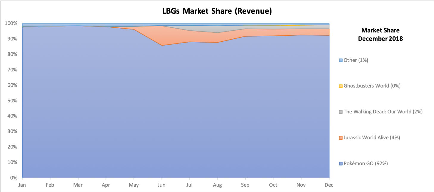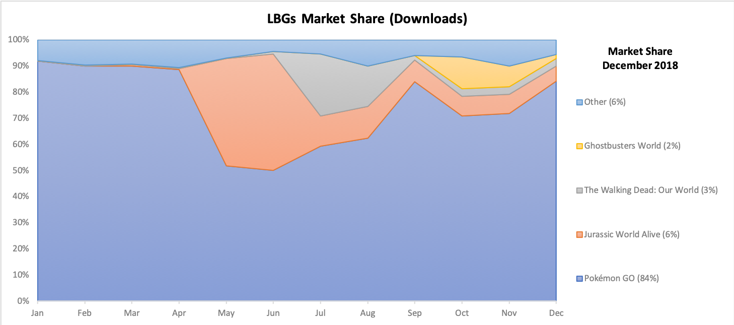 When looking at the 2018 data, it can be seen that LBGs as a whole have reached a point of maturity and without radical changes, the market will develop around the same pace during 2019 with Pokemon Go as the clear king of the genre.
