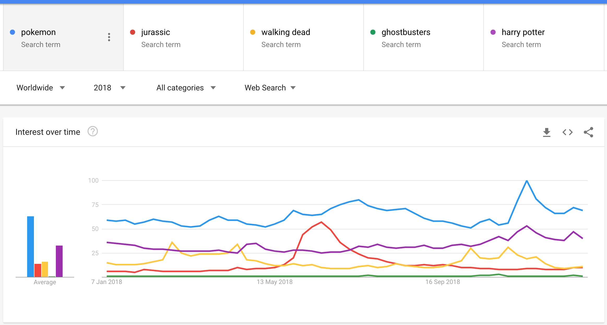 Secondly - Google search interest for Pokemon is way higher across the world compared to any of the other IPs. Another strong indicator of the huge reach of the Pokemon IP, and probably a more globally recognised one than the rest.