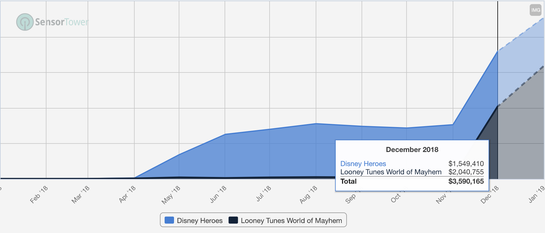 Disney Heroes didn’t reach the top and the jury is still out on Looney Tunes. Arguably these and other more casual IPs are not that suited for turn-based RPG games.