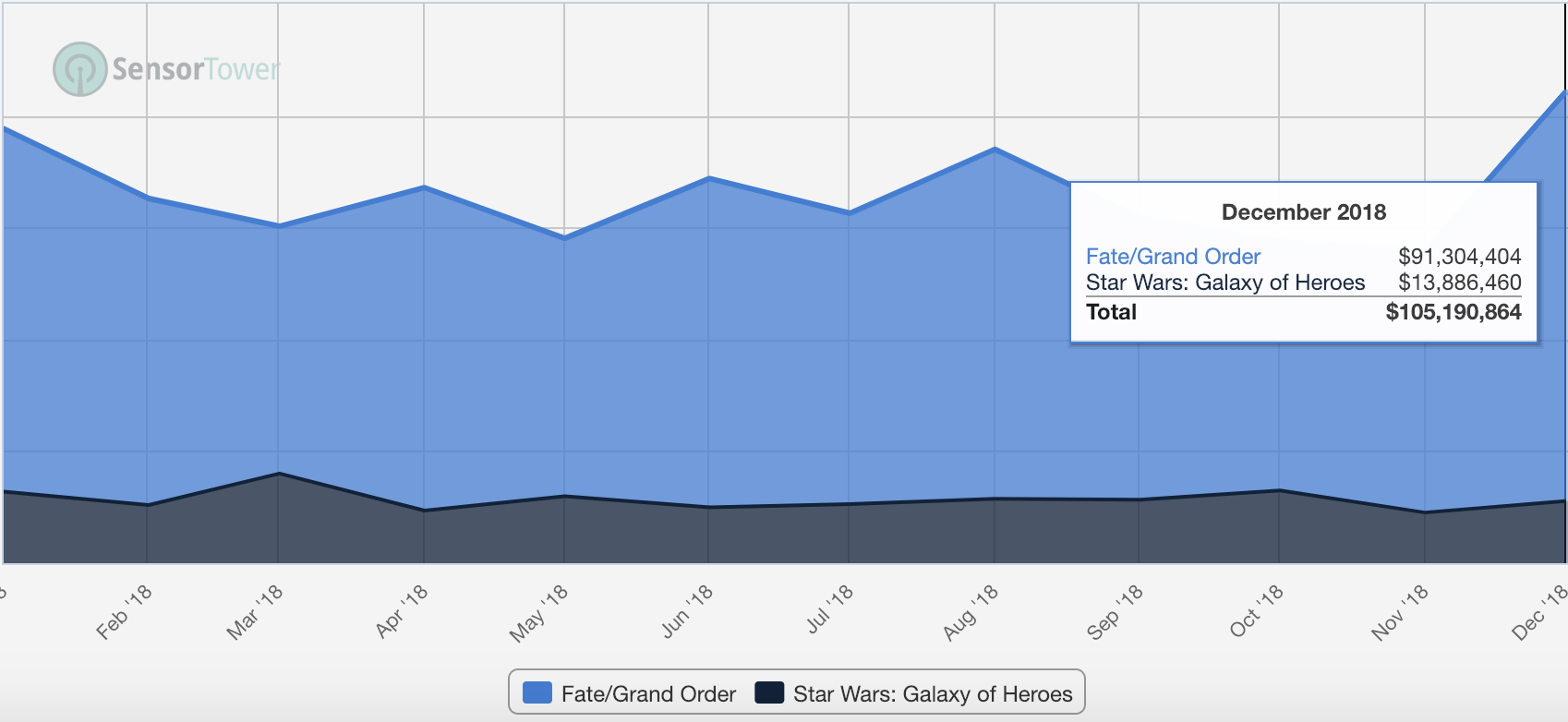 Fate Grand Order 3M installs and $1832M in net revenue in 2018