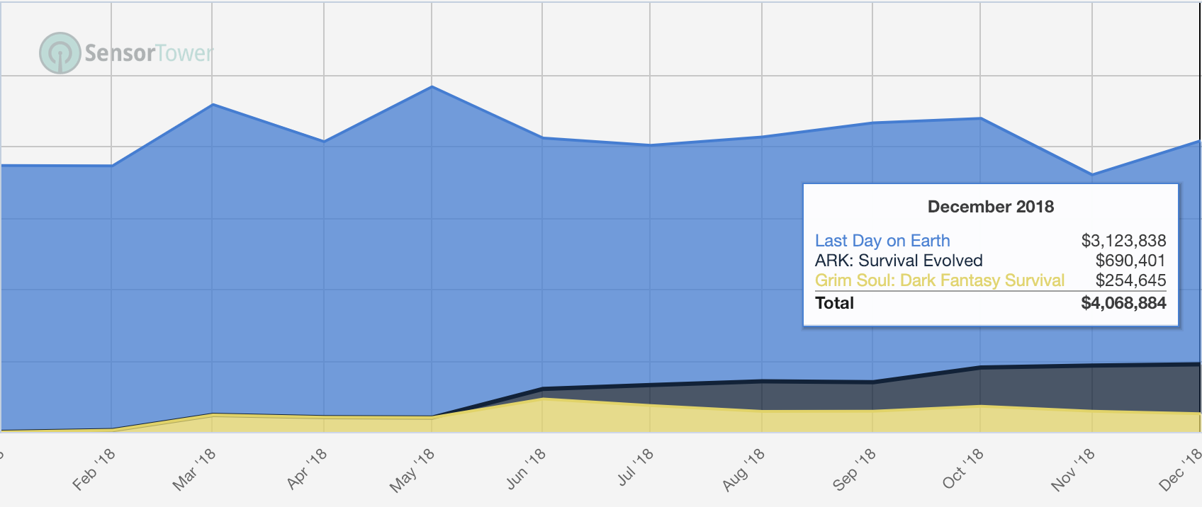 Survival Games is the newest RPG category and by far the smallest and most insignificant one. It got kicked off in May of 2017 by a total surprise hit Last Day on Earth.
