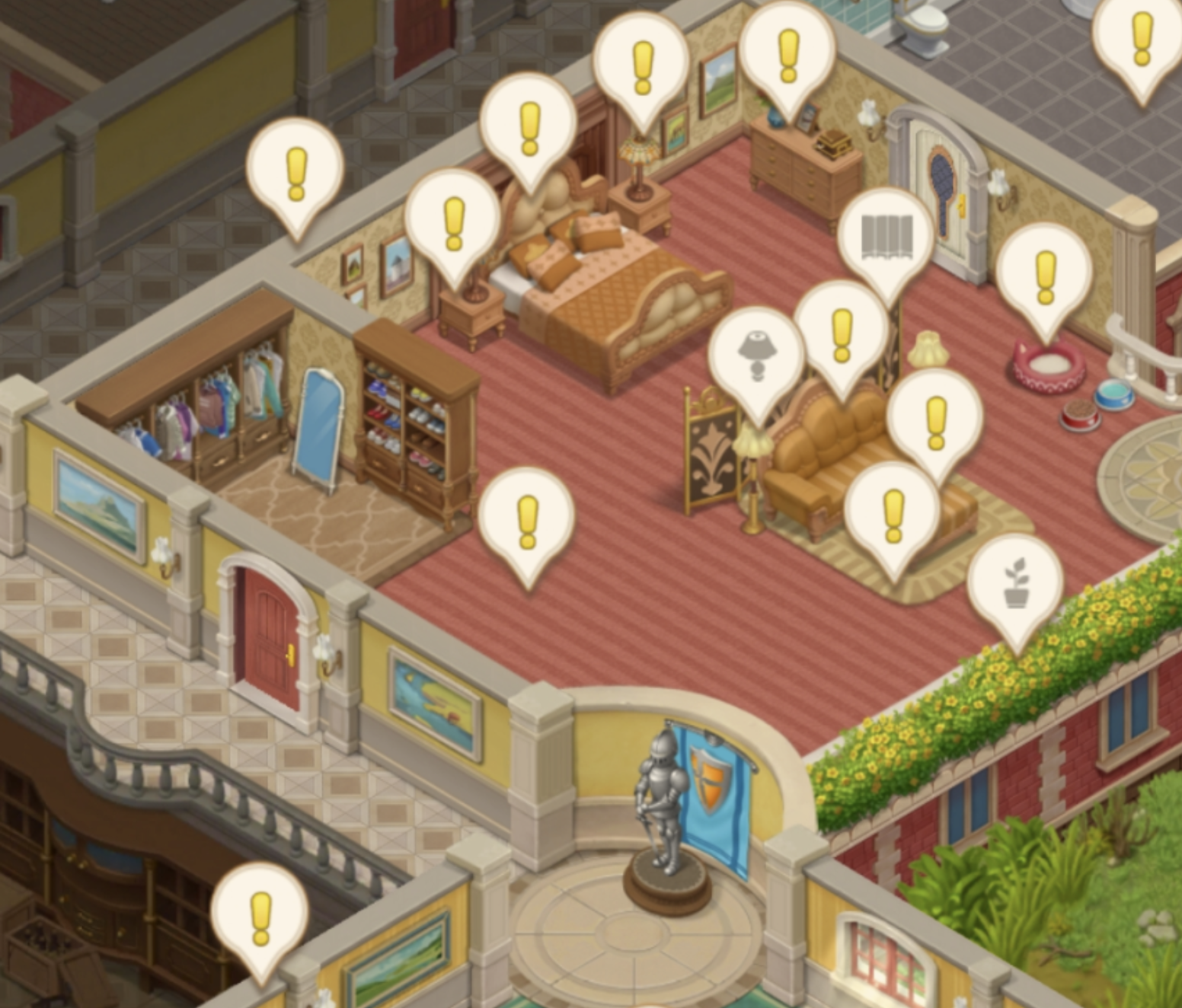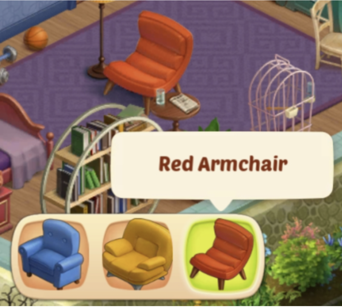 And this brings us to another essential difference. In Homescapes, the player chooses one out of the three options they like, but if they afterwards decide they don’t like how their Red Armchair matches the carpet, they can change it at any point.