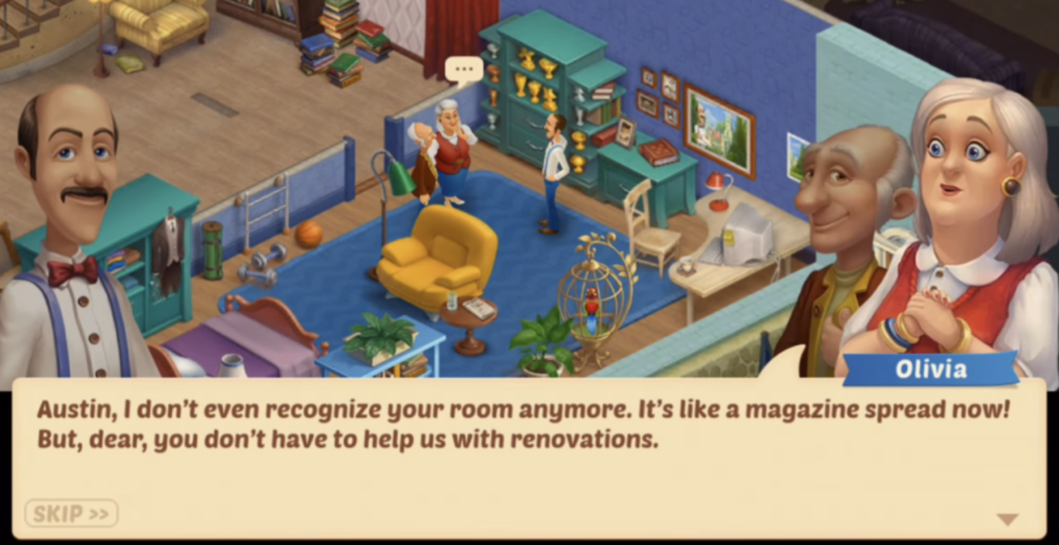 Technically, Homescapes’ story lacks some depth as well. The hook “Fix the mansion to persuade my parents not to sell it” doesn’t work as well as the antagonist-driven “That capitalist jerk is trying to turn my sweet granny’s mansion into a casino”