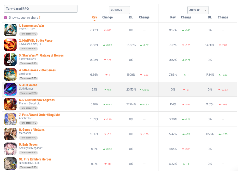 In a single quarter AFK Arena has been able to blast through the ultra competitive competition of turn-based RPGs in US capturing 6% of all revenue and 24% of installs. A push that is very likely to continue…