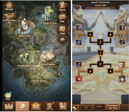 Improving from SWGOH, they have multiple arenas running at the same time -- allowing players to choose which competition they are more likely to be competitive within, and even allowing players to spectate the “Legends Championship” as it runs -- giving players more teasing of the top teams in the game.