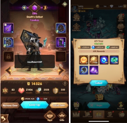 In AFK spending alone can never be enough to improve your team power rating. The only way to get the resources that will help players level up a hero is via the Progression Modes (Campaign) or the AFK mechanic (Idle timer). When players are blocked and need to level up one of their heroes or enhance their gear, their only option is to wait long enough to accumulate the required resources in the idle resource collection mechanic. AFK Arena ties in the progression and monetization loop to an idle mechanic that introduces new ways to session the player’s journey. In other words, the only way to level up the heroes in the game is by playing the game.