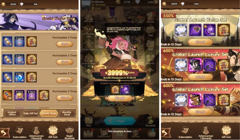 Compared to other RPGs out there, AFK Arena is not that aggressive when it comes to the offers it surfaces to players. But those offers and deals are there - players just need to work a bit to find them. The game features multiple types of IAPs, and there are always multiple deals for players to choose from. And because these are high value/high discount deals they make the default store stand out as a decoy than a significant source of revenue for the game.
