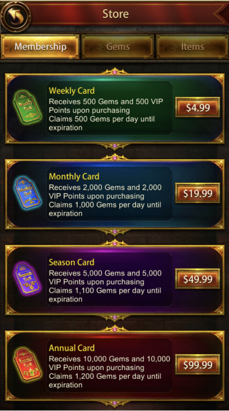 While not a game model example of subscriptions as a monetisation model, AFK Arena has an interesting approach of evolving players’ benefits across the game as their VIP Level increases.