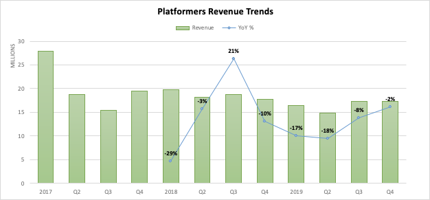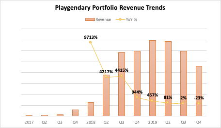 Playgendary’s IAP revenues have taken a massive beating over 2019 with YoY revenue growth rate dipping to -23% by Q4 2019.