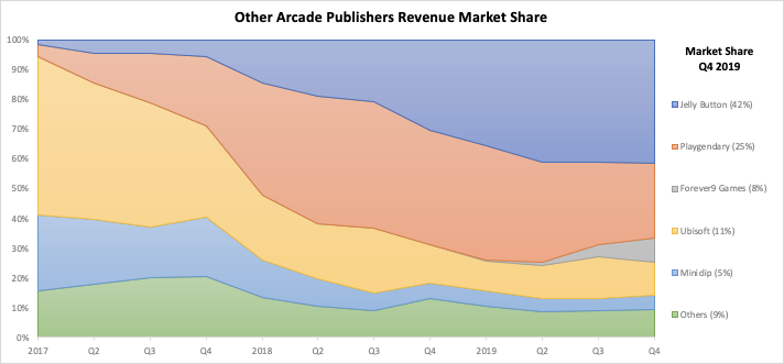 Jelly Button leading the pack, while Playgendary sustains and Forever9 slowly grows.