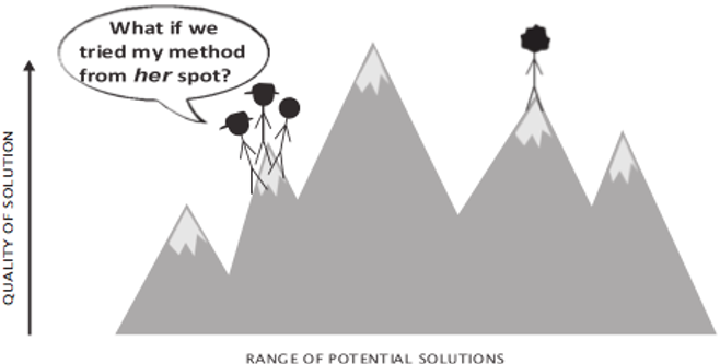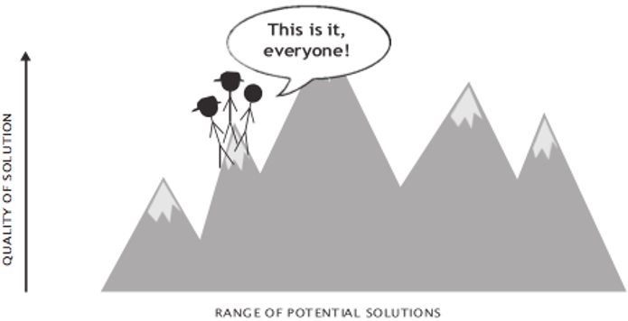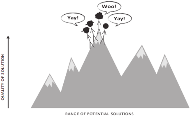 Here, you have a group of analytical thinkers in a team who are working on solving a problem and finding the best solution. The height of the mountain represents the quality of the solution - this is how far that group can go: