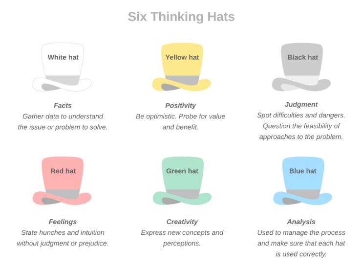 Six thinking hats. Illustration from Lucidchart