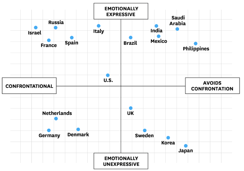 Erin Meyer in her book, The Culture Map, gives the example that French and Germans tend to be more confrontational and direct in disagreements, which can intimidate other team members. While in Asian cultures, people tend to avoid confrontations in public to preserve the harmony of the group, even if they deeply disagree with the decision.