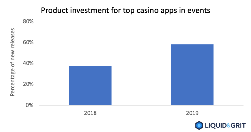 2019 showcased a +20 percentage point increase to investment in live-ops events across top casino apps vs 2018.