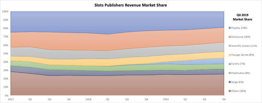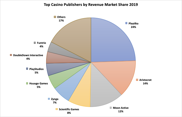 Playtika in the lead, followed by Aristocrat, Moon Active, Scientific Games and Zynga.