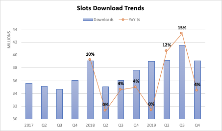 2020 Prediction #1: Slots will continue to face downloads market size stagnation issues in 2020, but will maintain its steady revenue growth rate - just at a lower intensity.