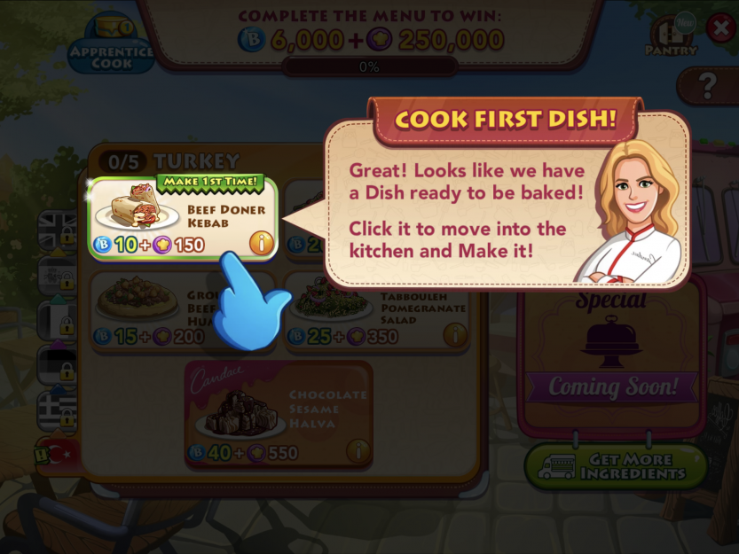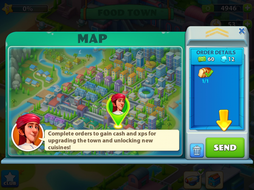 In June, when revenue started to take off, Bingo Scapes released a sim-like area called Food Town. In this feature, players collect ingredients during bingo play, similar to the core gameplay in Playrix’s Township. Players then use ingredients to fill orders for Food Town XP and bingo currency. Food Town’s XP progression is separate from the main game’s progression, allowing players to upgrade and unlock additional areas and items.