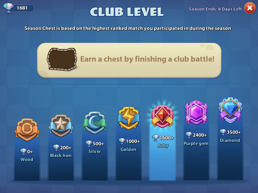In April, the app released clubs and club battles. The initial club feature was primarily social, allowing players to chat and send currency. Similar features were released in Toy Blast, Gardenscapes, and Lost Island Blast Adventure. Club battles added competitions for these social players, including tiers, event currency, a prize exchange shop, and exclusive purchases for club members.