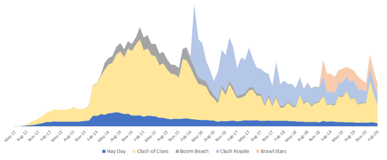 Supercell’s Gross Revenues by game over 2012-2020 (source: Sensor Tower)